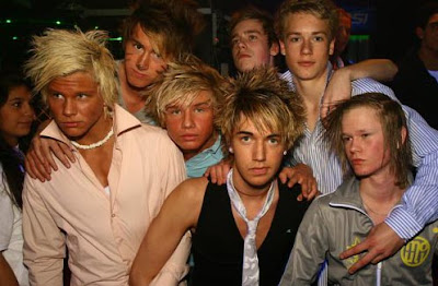 Usch stackare. Jag vet inte riktigt hur de tänker, hur man sån? Vaknar man en dag och tänker "fan va fränt det skulle vara med 20 hårband på varje ben? Och jag vet! Jag tar morsans brunkräm och smetar in ansiktet med den.